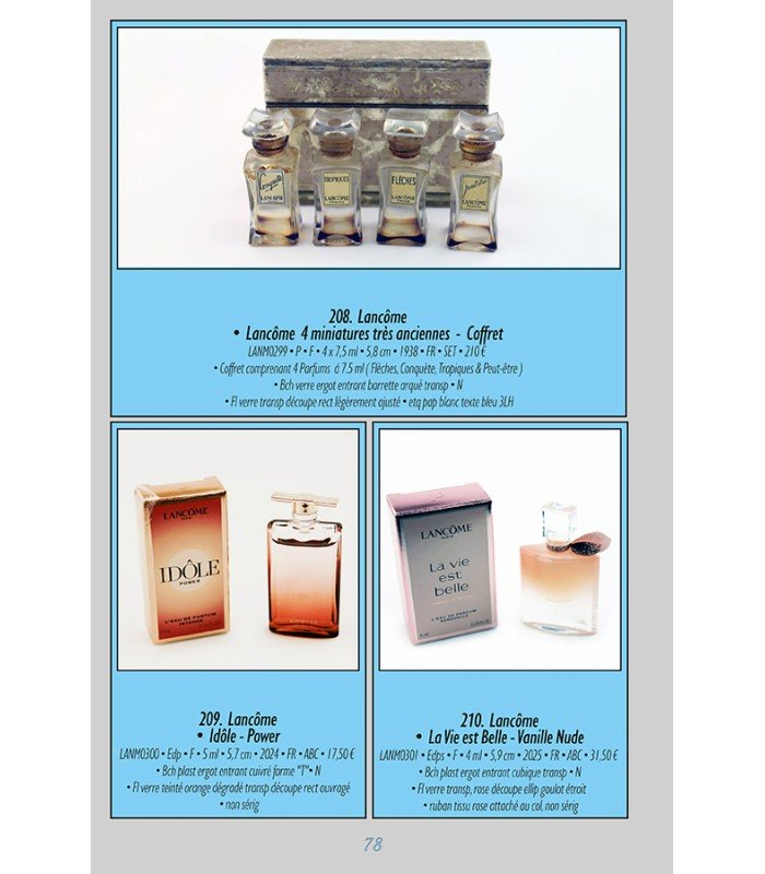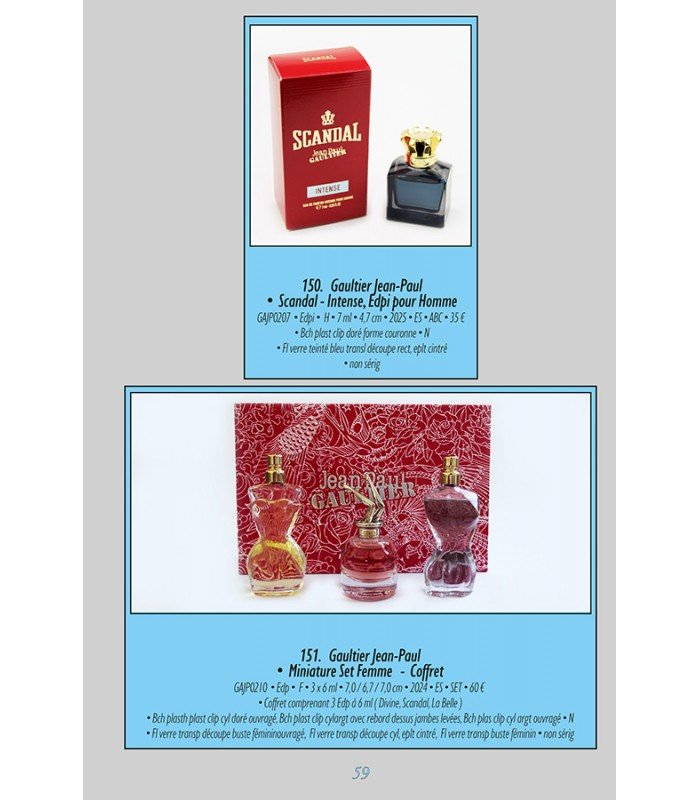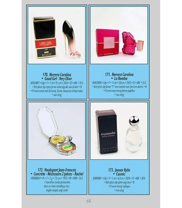 Ce catalogue comprend 402 miniatures de parfums dont les nouveautés parues en 2025 ainsi que des miniatures non publiées entre 1920 et 2024.
